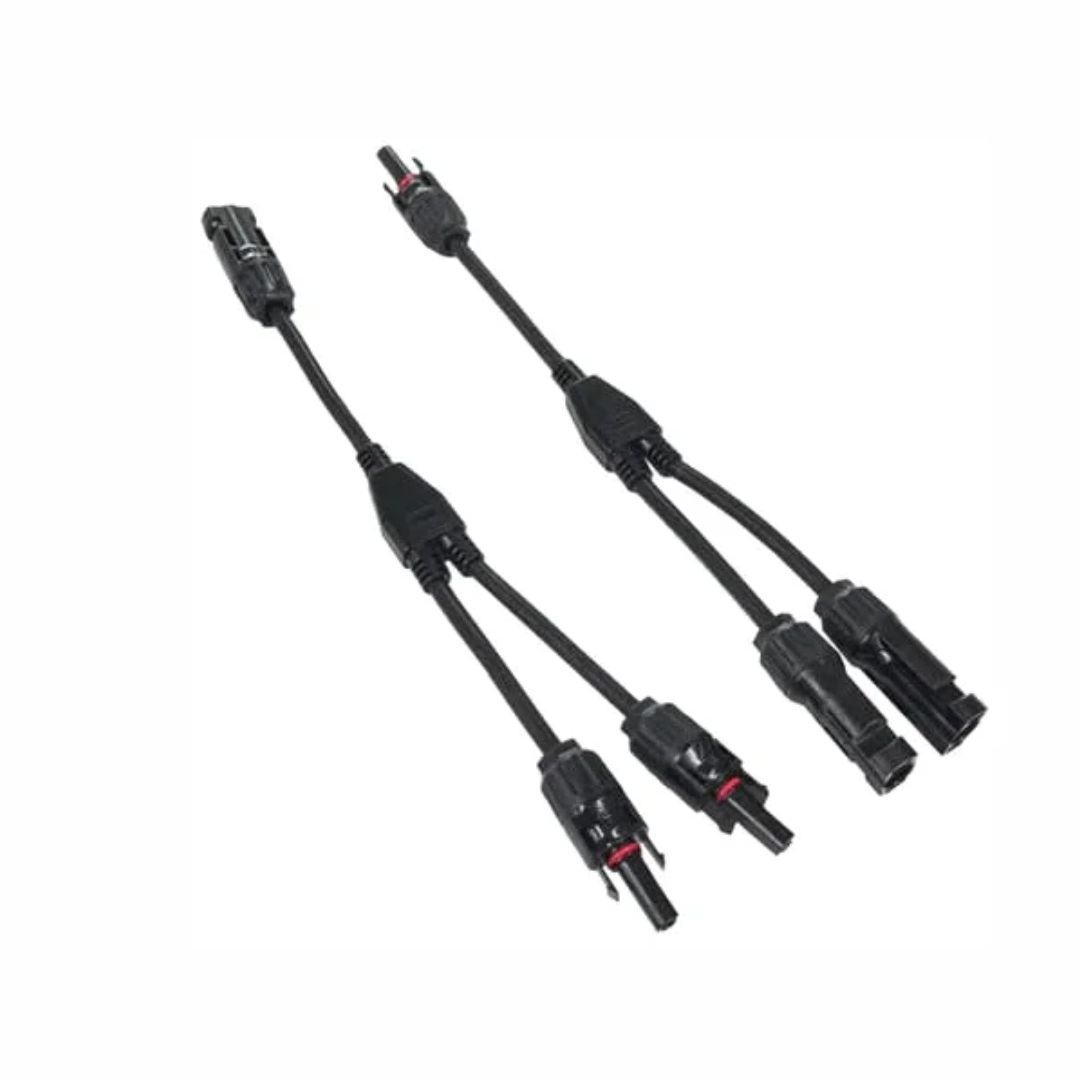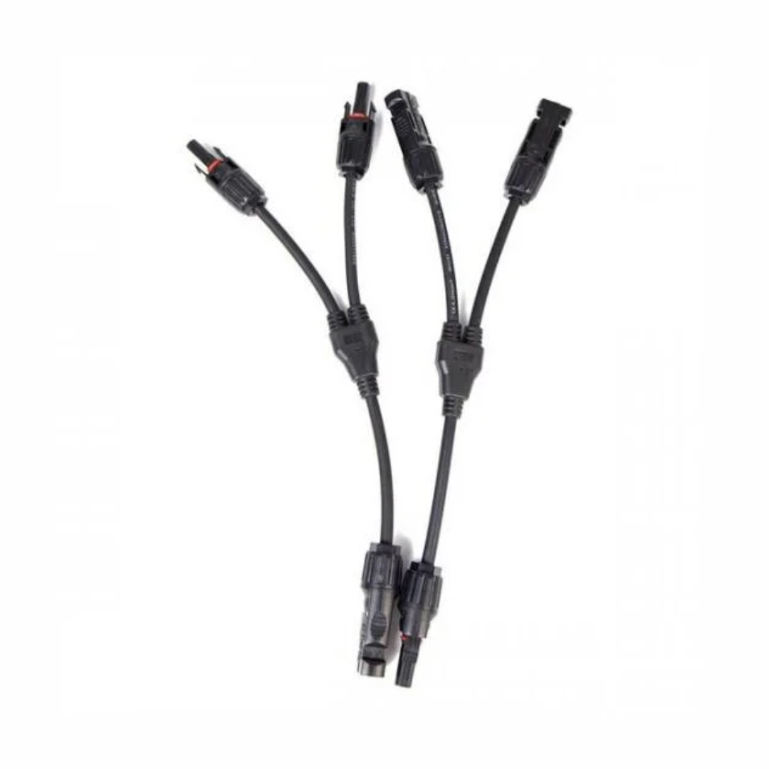 O cabo solar paralelo EcoFlow possibilita duplicar a saída MC4 de um para dois conectores MC4, permitindo a ligação de dois painéis solares em paralelo.