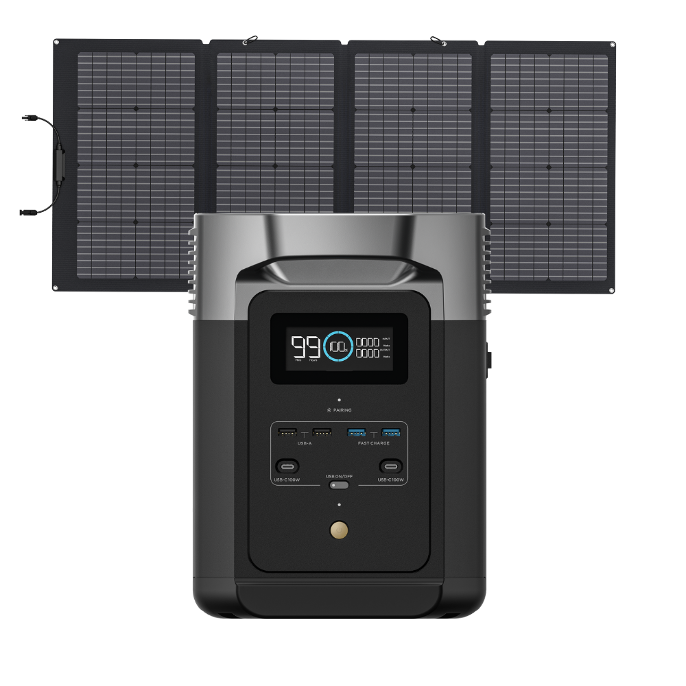 O DELTA 2 é apenas o começo. Conecte-se com uma ampla variedade de produtos EcoFlow, como painéis solares portáteis, o ar condicionado portátil Wave, baterias extras, geradores inteligentes (dual fuel) e muito mais. Tudo para oferecer uma solução de energia completa para sua família.
