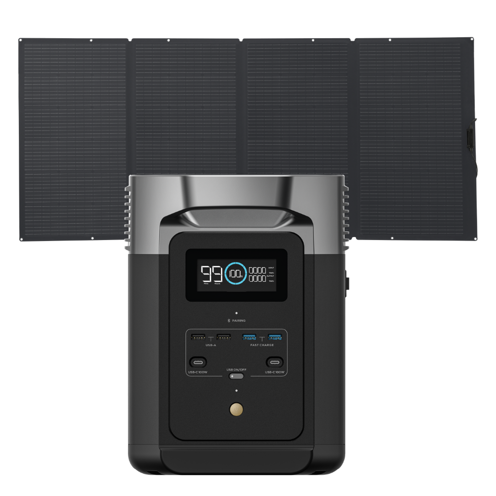 Armazenar energia em uma bateria significa que você pode alimentar dispositivos por horas ou dias seguidos, em ambientes internos ou externos. Tudo isso sem acesso à rede elétrica. O DELTA 2 permite armazenar de 1 a 3 kWh. Em outras palavras, é uma quantidade variável de energia para alimentar seus itens essenciais. Ao contrário de baterias menores, ele pode manter geladeiras, telefones e até mesmo fogueirinhas elétricas ligadas por períodos prolongados.